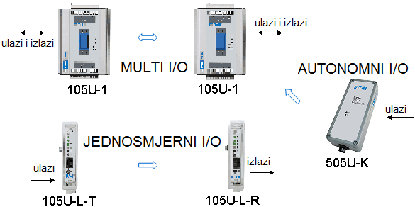 Radio uređaji 105U-L-T/R služe za direktni jednosmjerni prijenos digitalnih i analognih signala na udaljenosti do 5 km na slobodnoj radijskoj frekvenciji 869 Mhz za koju nisu potrebne posebne dozvole.