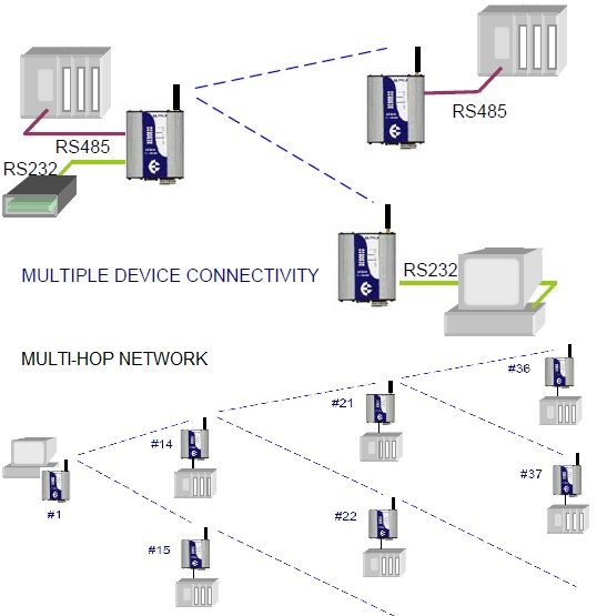 ELPRO bežični serijski modemi omogućuju RS-232 i/ili RS-485 serijskim uređajima transparentnu komunikaciju. |