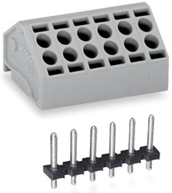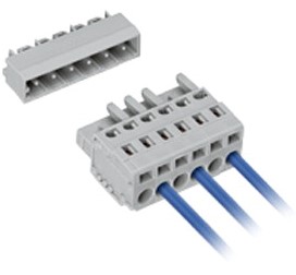 Priključivi PCB konektori namijenjeni su za vodiče veličine od 0,2 do 2,5 mm². Moguće je spajanje dva vodiča, a dostupni su i konektori za EIB (European Installation Bus) aplikacije. Prilikom isporuke, priključivi ženski konektori pričvršćuju se s pinovima za lemljenje, što dopušta izravno lemljenje na tiskanu pločicu i ožičavanje na isti način kao i obične PCB stezaljke. |