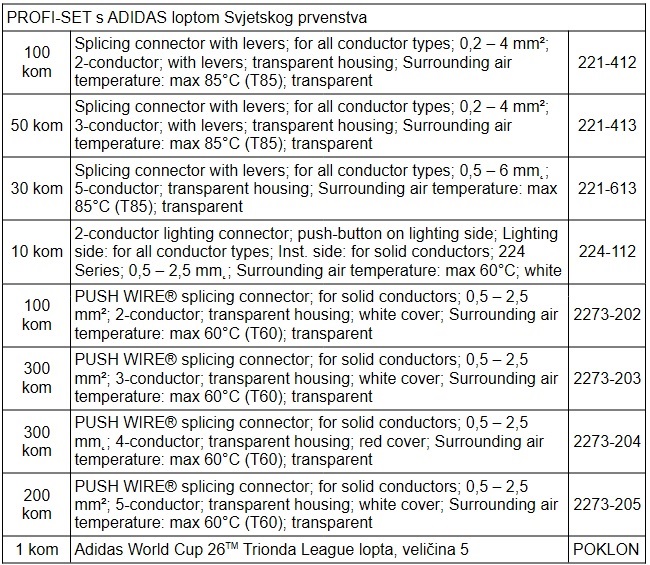 PROFI-SET uz poklon - ADIDAS lopta Svjetskog prvenstva |